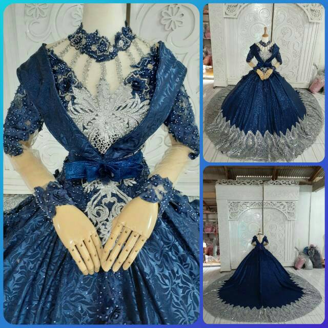 Beaunique baby blue tailor made premium wedding gown muslimah bridal dress baju pengantin lace peplum tulle gauze grand. Jual gaun pengantin navy gold plus couple jas gold di lapak galeri. 20/06/2022 · navy blue + gold luxury ball gown.